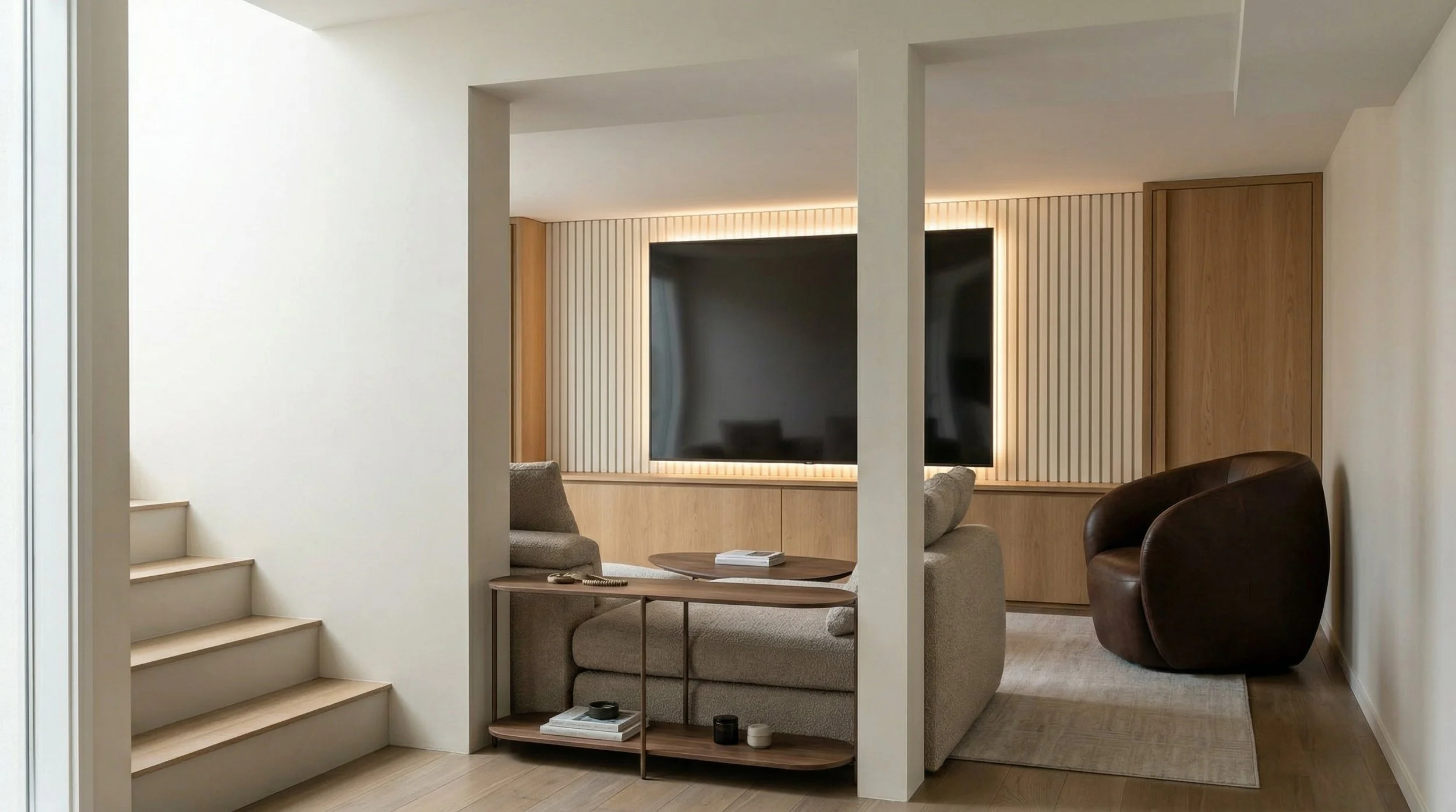 A beautifully reimagined single-family home, 55 Myrtle offers elevated modern living with an airy, design-forward layout and carefully curated finishes throughout. The main level unfolds with an open-concept living room centered around a custom entertainment wall, while a dramatic open-to-above sitting area creates a striking architectural moment and enhances the sense of light, volume, and flow.